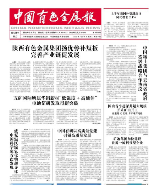 【學(xué)思想 強(qiáng)黨性 重實(shí)踐 建新功】陜西有色金屬集團(tuán):揚(yáng)優(yōu)勢(shì)補(bǔ)短板 完善產(chǎn)業(yè)鏈促發(fā)展|陜西省_新浪財(cái)經(jīng)_新浪網(wǎng) (sina.com.cn, http://sn.people.com.cn/n2/2023/0707/c186331-40485571.html ;https://paper.cnmn.com.cn/Content.aspx?id=180448&q=4868&v=1 )