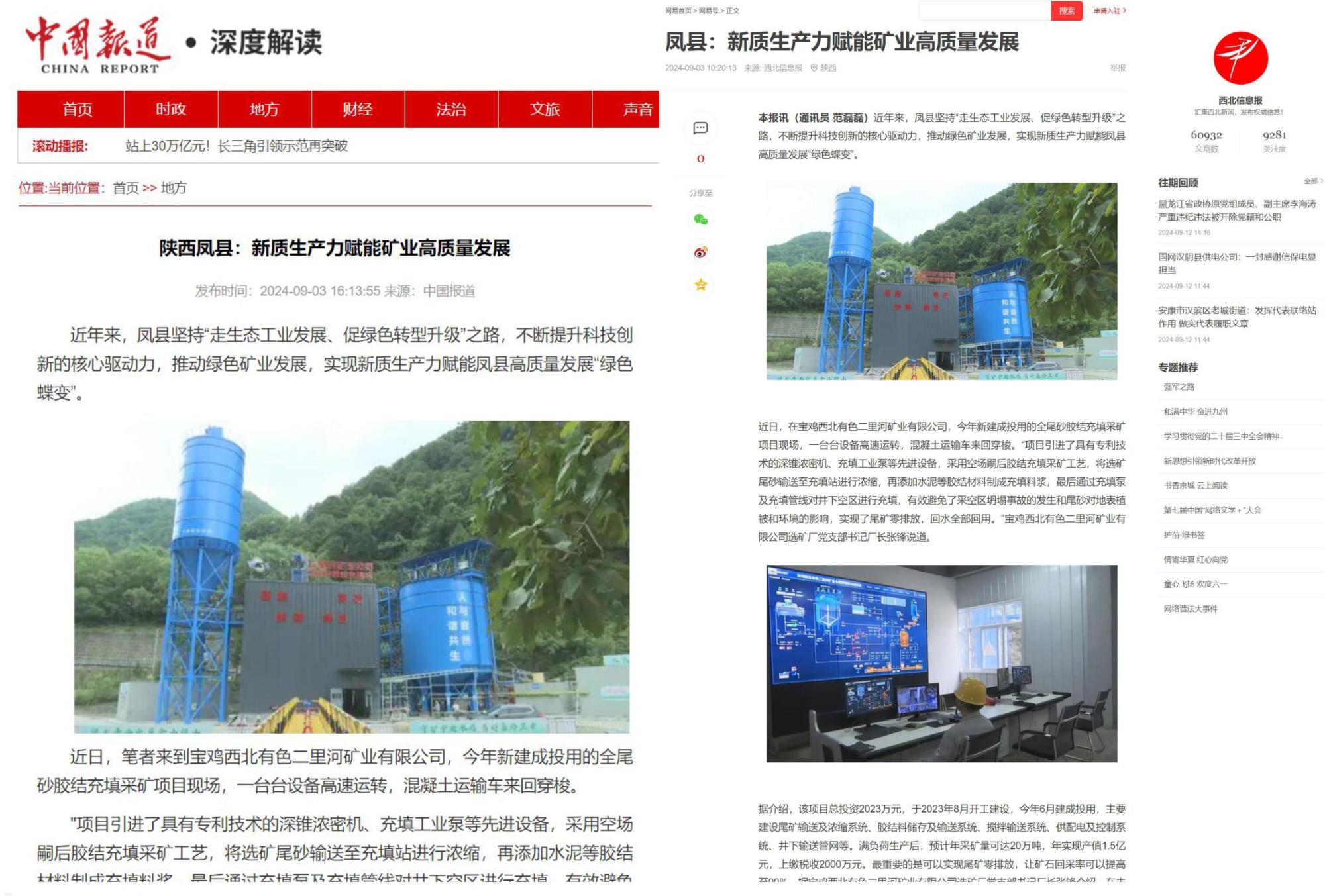 近日,中國(guó)報(bào)道、西部網(wǎng)、西北信息報(bào)、寶雞市鳳縣融媒體中心、鳳縣先鋒等主流媒體,以《鳳縣:新質(zhì)生產(chǎn)力賦能礦業(yè)高質(zhì)量發(fā)展》為題,集中報(bào)道了地礦集團(tuán)權(quán)屬鉛鋅集團(tuán)寶雞各礦山企業(yè)和銀母寺礦業(yè)公司以綠色發(fā)展促進(jìn)新質(zhì)生產(chǎn)力躍升、賦能鳳縣社會(huì)經(jīng)濟(jì)高質(zhì)量發(fā)展的經(jīng)驗(yàn)做法。全文如下: