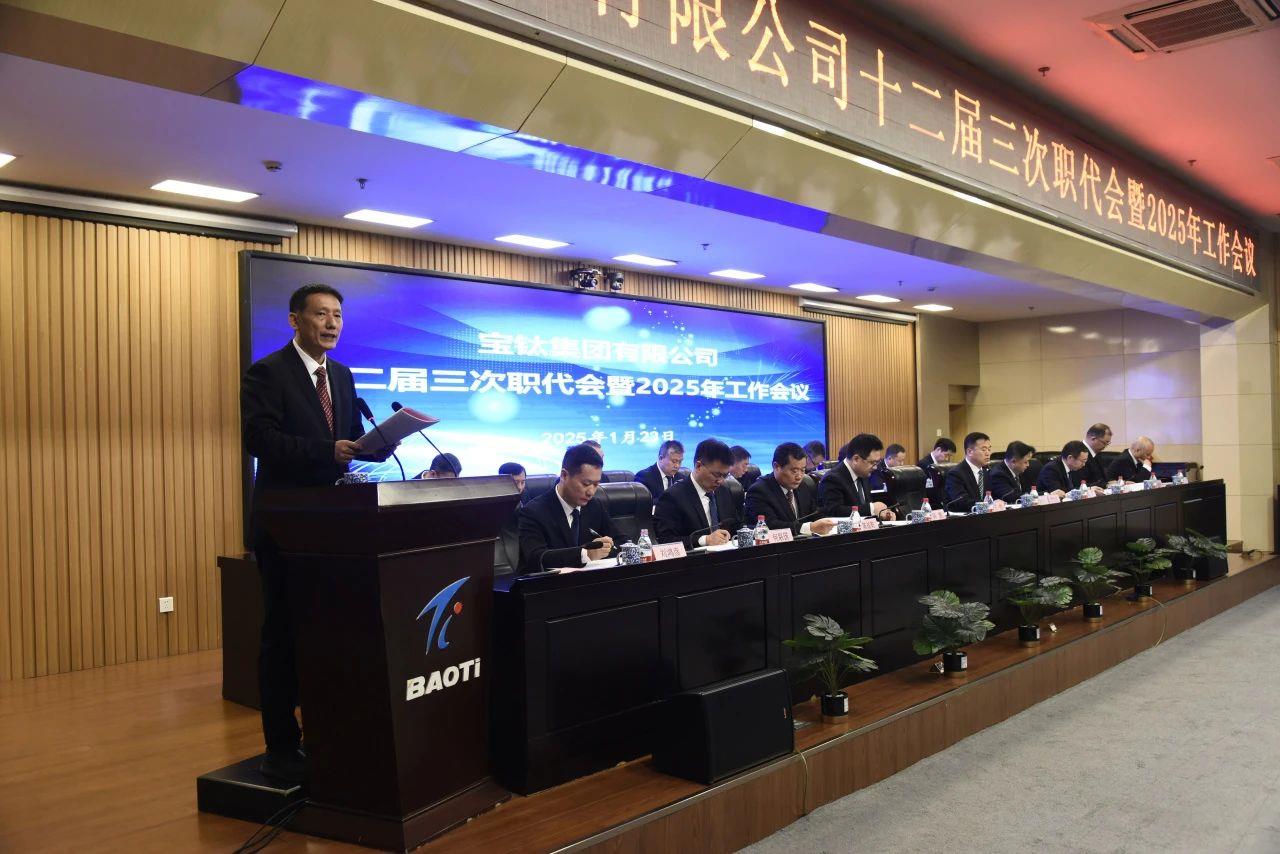 1月23日,寶鈦集團(tuán)十二屆三次職代會暨2025年工作會議順利召開。集團(tuán)黨委書記、董事長、總經(jīng)理王儉作工作報(bào)告,黨委副書記、工會主席賀治民主持會議,黨委委員、副總經(jīng)理何聯(lián)國傳達(dá)上級會議精神。