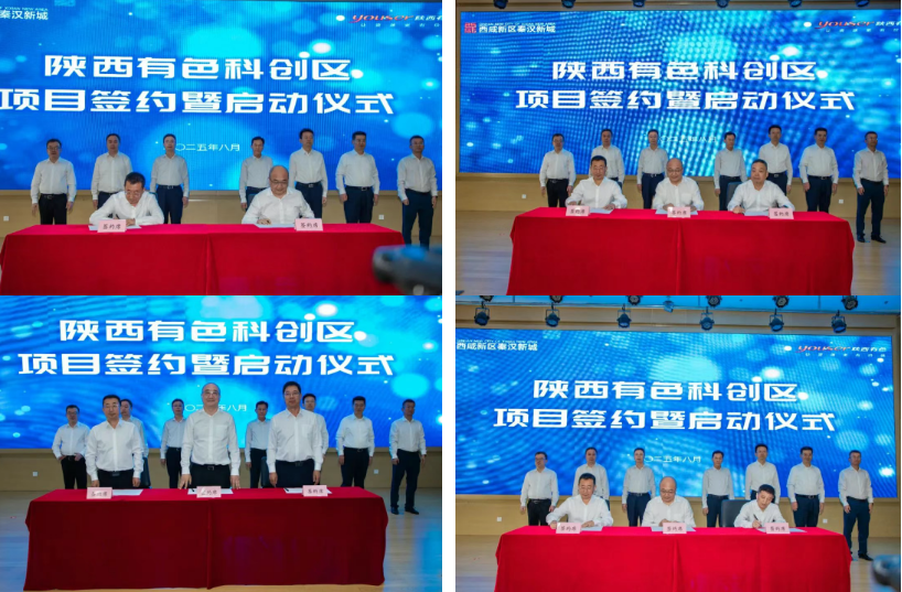 8月19日,陜西有色科創(chuàng)區(qū)項(xiàng)目簽約暨啟動(dòng)儀式在西咸新區(qū)秦漢新城管委會(huì)舉行。陜西有色金屬集團(tuán)黨委書記、董事長吳群英,西咸新區(qū)黨工委書記劉國榮見簽并揭牌。集團(tuán)公司黨委副書記、董事、總經(jīng)理莫勇,西咸新區(qū)管委會(huì)主任齊海兵、副主任張博出席并見簽。集團(tuán)公司黨委委員、副總經(jīng)理霍學(xué)杰主持簽約儀式。