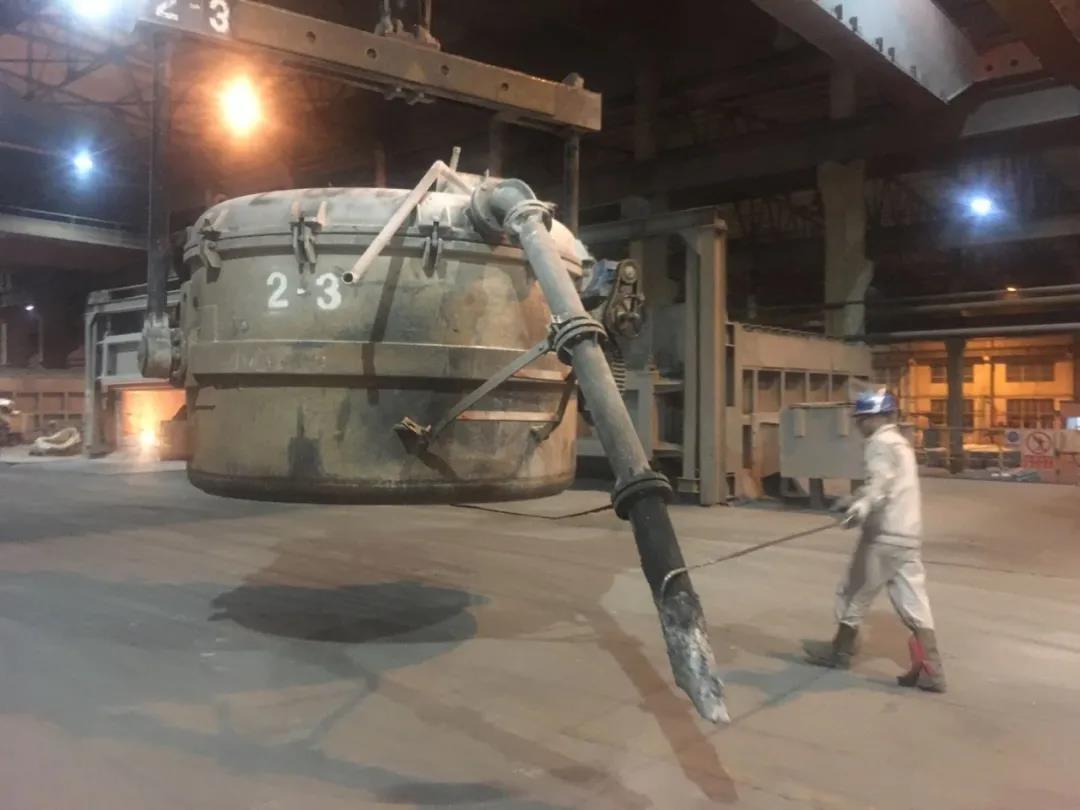 一組剛剛電解的陽極塊碳化燃燒的殘渣被天車吊出來,放在槽子的邊上,通紅的火焰還未冷卻,熱氣騰騰的水氣、塵埃冉冉升起。我感受到鼻腔瞬間炙熱和呼吸急促,我想用手機抓拍一張陽極電化后的照片,手機卻只顯示著時間和日歷,怎么滑動也進入不到系統(tǒng)里,小楊將我們帶到旁邊一個觀測室。