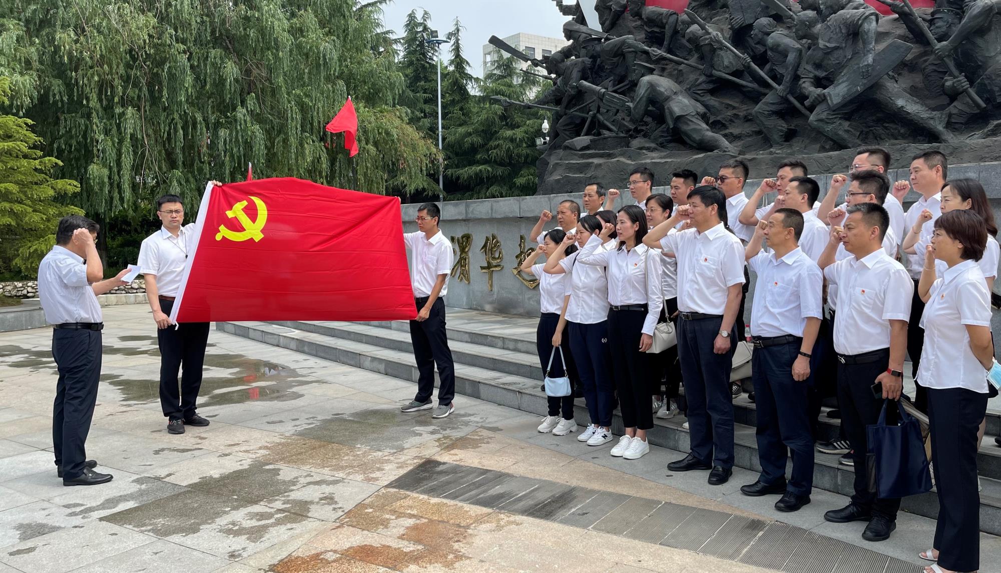 渭華起義紀(jì)念碑前,全體黨員在黨委書記葛琦的帶領(lǐng)下,面對黨旗,重溫入黨誓詞,誓言鏗鏘有力,振奮人心。