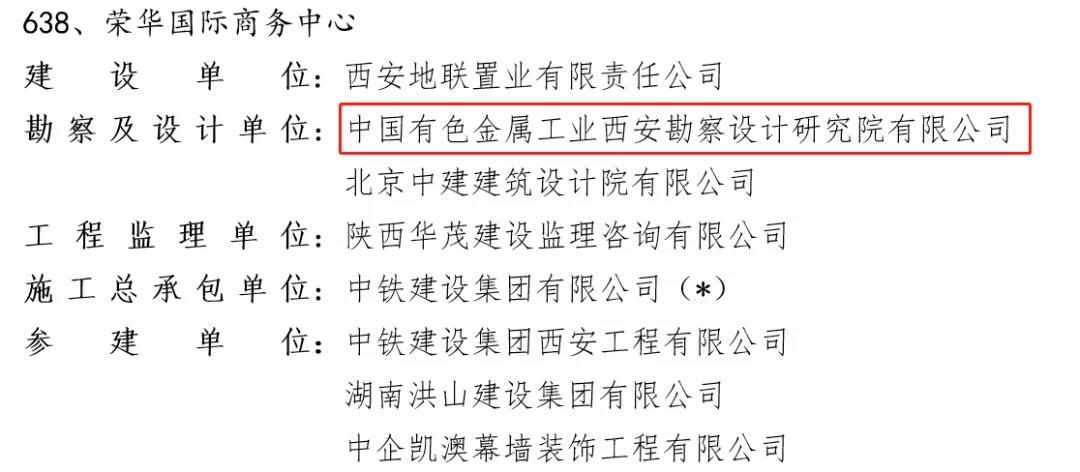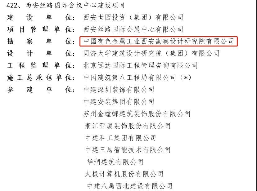 近日,中國施工企業(yè)管理協(xié)會發(fā)布了關(guān)于表彰2020—2021年度國家優(yōu)質(zhì)工程獎的決定,西安勘察院參建的六個項目獲獎。