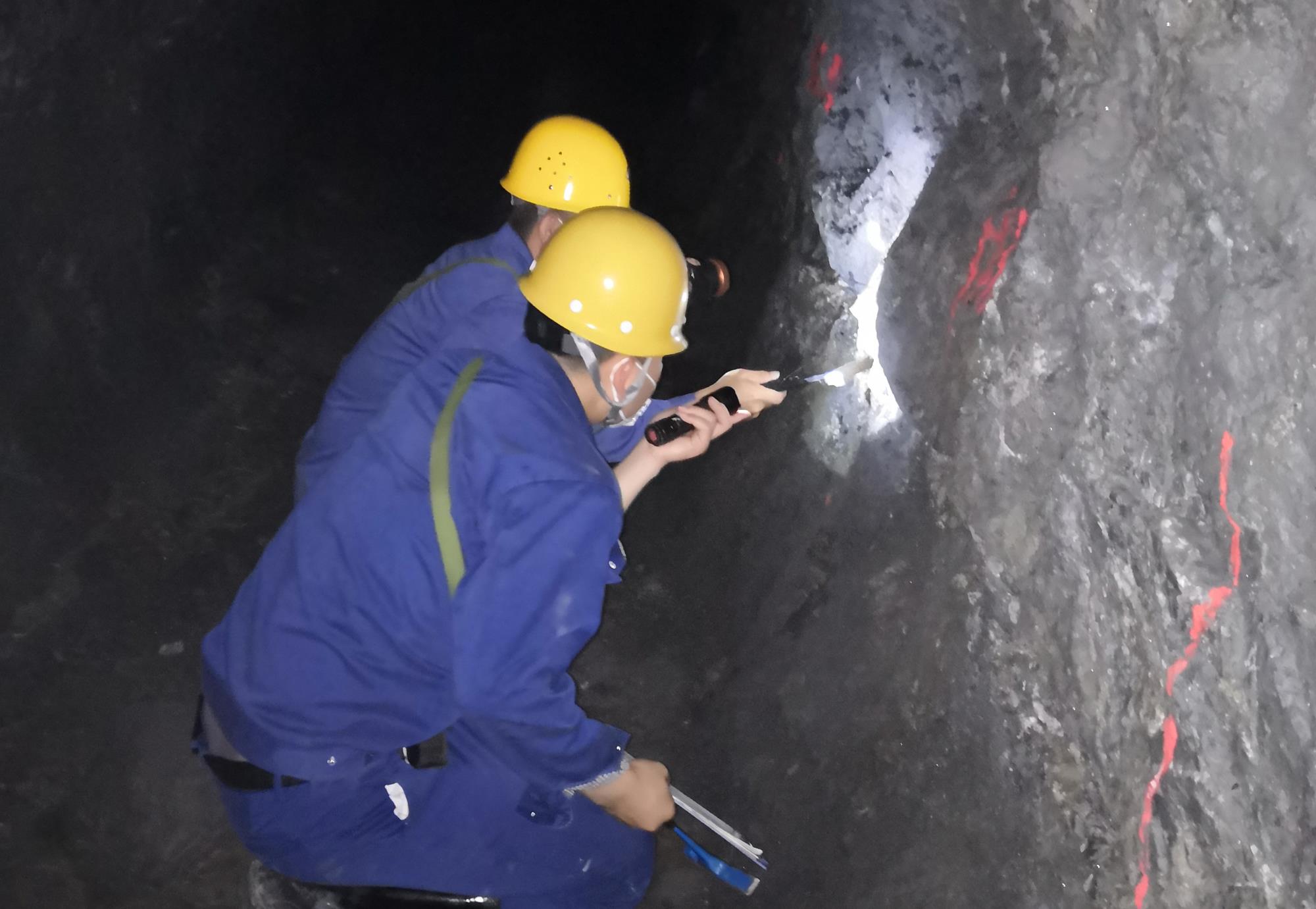 ▲寶雞鳳縣東塘子鉛鋅礦床86線以西詳查項(xiàng)目組人員開展坑道調(diào)研