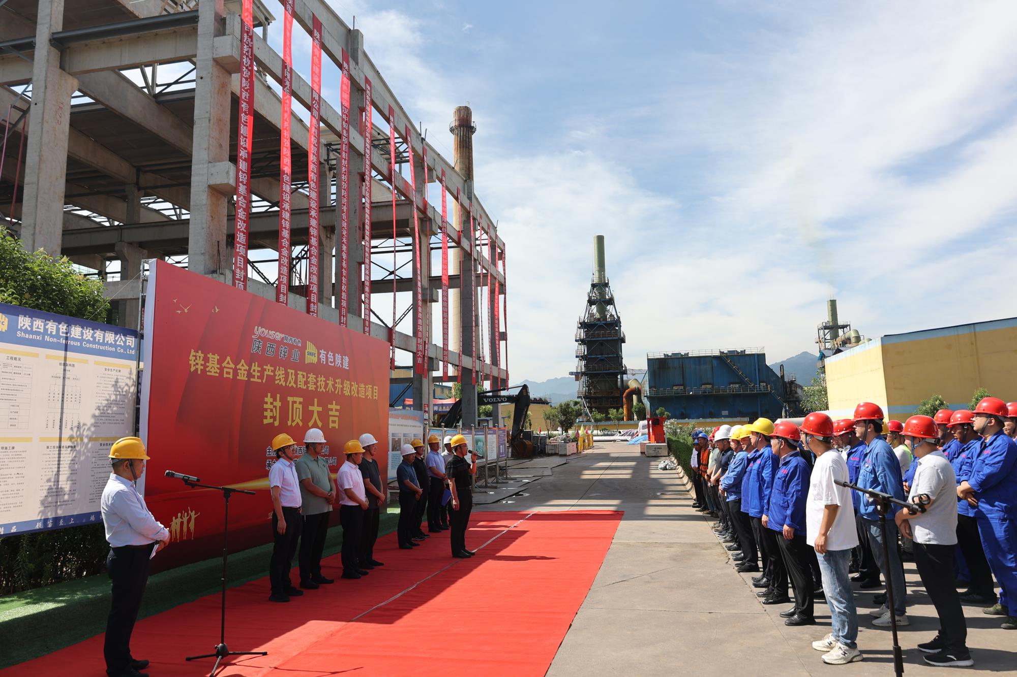 7月6日,由陜西有色建設(shè)有限公司承建的陜西鋅業(yè)公司鋅基合金項(xiàng)目主體廠房結(jié)構(gòu)封頂。