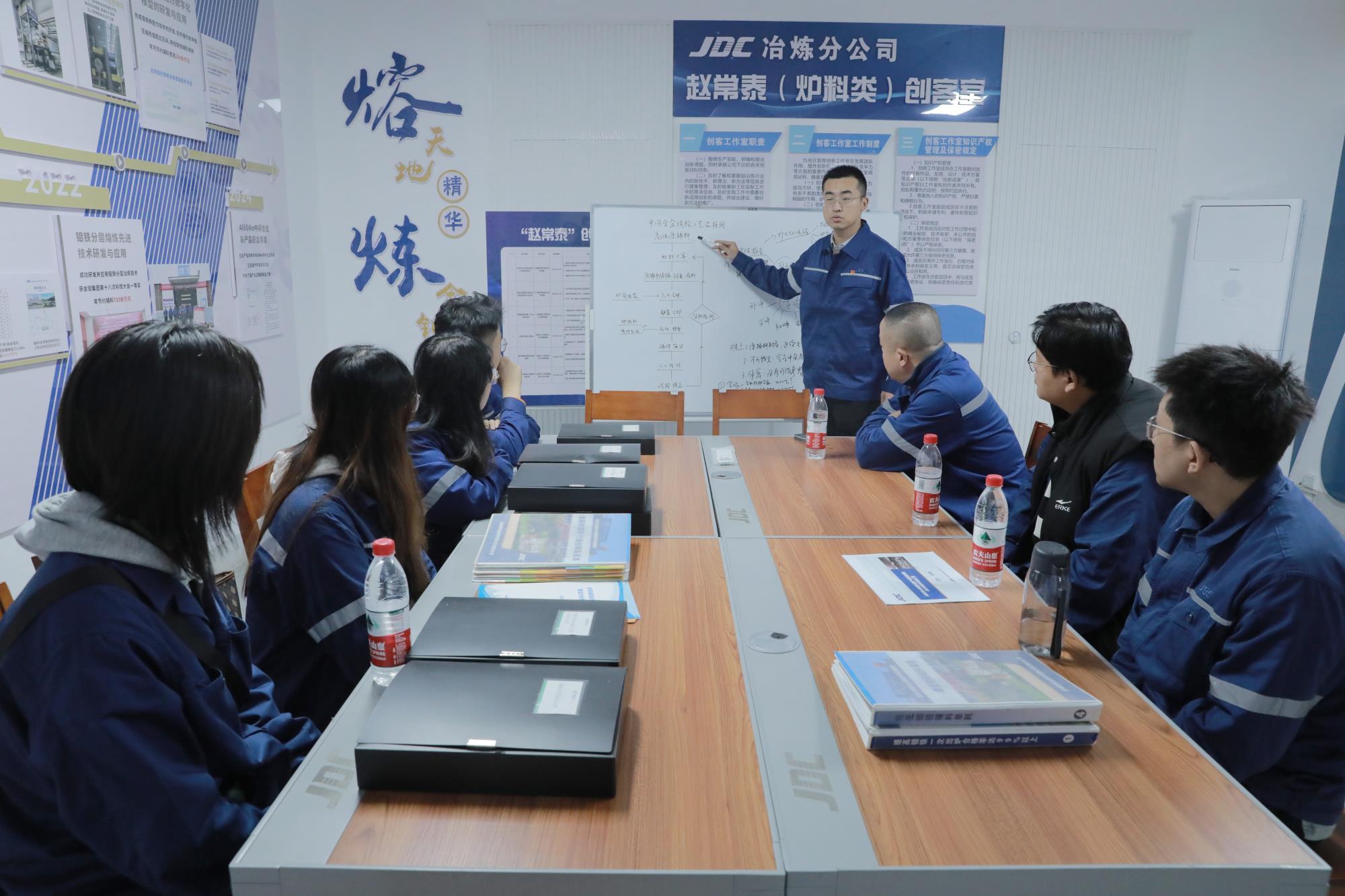 團隊成員林兵是2020年入職的大學生,“我很幸運,從剛?cè)肼毦湍芨w常泰團隊一起做事,不光在能力上提升了很多,更讓我明確了人生的方向”。搭乘趙常泰創(chuàng)客工作室的東風,四年內(nèi)林兵成長得非常迅速。如今他已能夠獨當一面。在含鉬中間合金設備選型中,他將烘箱設計為一箱兩用式并確定進風方式,對石墨坩堝及部分原輔料同時進行烘干確保烘干效率,從而減少了渣噴濺,提高回收率。此外,他還在2024年“中國銅業(yè)杯”全國有色金屬行業(yè)班組長綜合管理技能競賽中獲得個人三等獎。