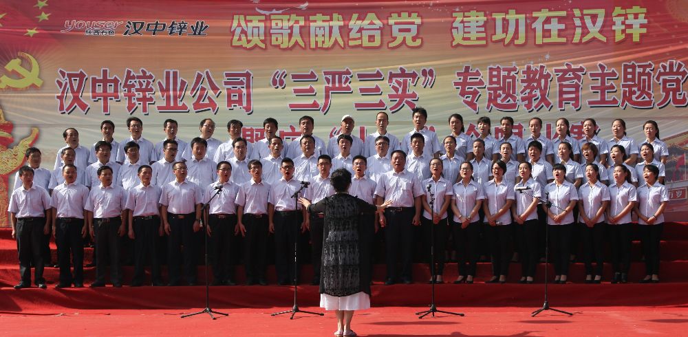 7月1日上午,漢中鋅業(yè)公司“三嚴(yán)三實(shí)”專題教育主題黨日活動(dòng)暨慶“七一”合唱比賽在職工活動(dòng)中心隆重上演。來自公司各單位的15支合唱隊(duì)共計(jì)1000余人歡聚一堂,一展歌喉,共慶黨的生日。大家用一曲曲嘹亮的紅歌,歌唱黨的光輝歷程,回顧黨的光榮歷史,為建黨94周年獻(xiàn)禮。公司領(lǐng)導(dǎo)劉朝斌、高文杰、侯小強(qiáng)、李永、張健康、王瑜一起參加了活動(dòng)。
