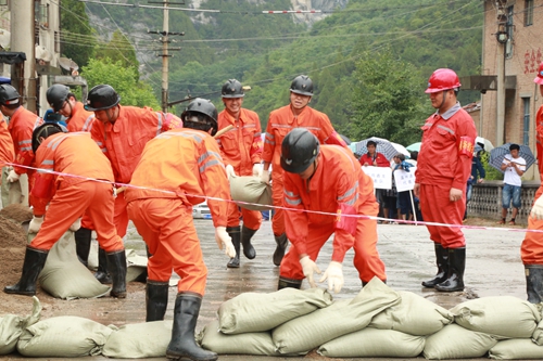 這是陜西鉛硐山礦業(yè)有限公司正在舉行的蔣家溝排渣場泥石流地質(zhì)災(zāi)害現(xiàn)場處置應(yīng)急演練的情景。