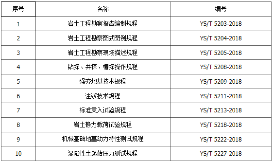 由中國有色金屬工業(yè)西安勘察設計研究院有限公司主編,會同中國有色金屬工業(yè)昆明勘察設計研究院有限公司、中國有色金屬工業(yè)長沙勘察設計研究院有限公司等多家單位共同修訂的《巖土工程勘察報告編制規(guī)程》等10項行業(yè)標準于近日正式出版發(fā)行。