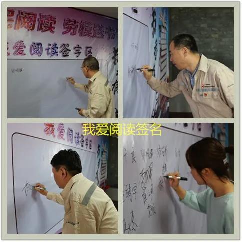 贈(zèng)書結(jié)束后,公司領(lǐng)導(dǎo)和現(xiàn)場所有勞動(dòng)模范代表、職工代表在“全民閱讀·我愛閱讀”簽名區(qū)簽字留念。一個(gè)個(gè)簽名,簽下的是公司領(lǐng)導(dǎo)對(duì)“全民閱讀”工作和職工讀書學(xué)習(xí)的高度重視,簽下的是廣大職工會(huì)員對(duì)讀書閱讀的熱愛和對(duì)新材料這個(gè)大家庭的愛!