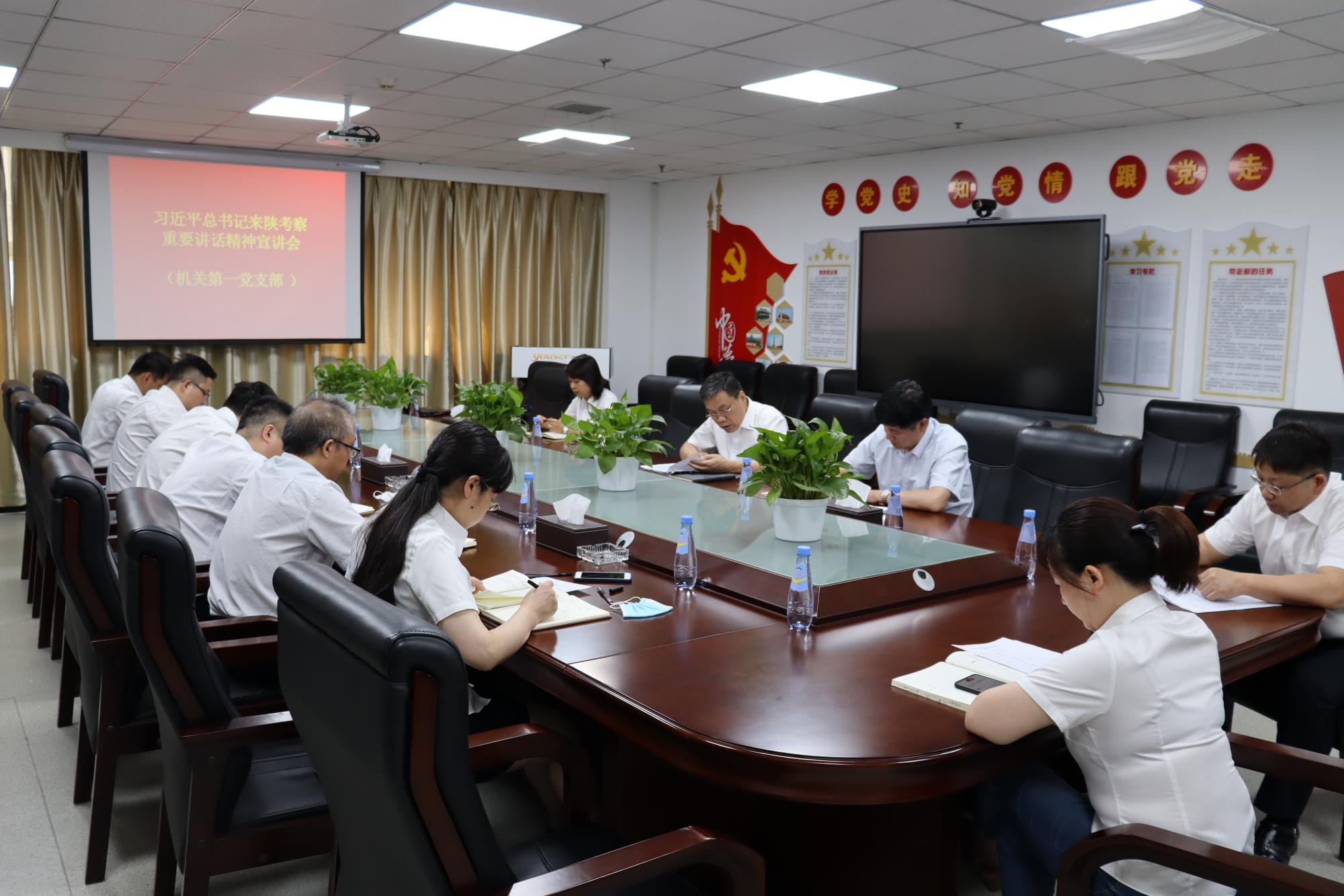 6月4日黨委書記葛琦在公司機關(guān)第一黨支部、6月9日黨委副書記苗謙在公司機關(guān)第二黨支部分別開展習(xí)近平總書記來陜考察重要講話精神宣講,共有22名黨員同志參加宣講會,共同學(xué)習(xí)了習(xí)近平總書記的來陜考察重要講話精神。大家一致認(rèn)為,習(xí)近平總書記在新冠肺炎疫情防控的重要階段,決勝脫貧攻堅的關(guān)鍵時刻,再次來陜西考察指導(dǎo)工作,是對陜西的關(guān)愛和重視,我們要切實增強“四個意識”,堅定“四個自信”,做到“兩個維護(hù)”,從總書記來陜考察重要講話重要指示中汲取力量、增強干勁,以勇立潮頭、爭當(dāng)時代弄潮兒的志向和氣魄,為譜寫新時代陜西追趕超越新篇章貢獻(xiàn)力量。