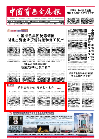 當(dāng)前,新型冠狀病毒感染的肺炎疫情防控進(jìn)入膠著對壘狀態(tài),防控工作到了最吃勁的關(guān)鍵階段。陜西有色集團(tuán)貫徹中央、省委部署,作出工作安排,要求在全力做好疫情防控工作的前提下,統(tǒng)籌抓好改革發(fā)展穩(wěn)定各項(xiàng)工作,確保實(shí)現(xiàn)全年目標(biāo)任務(wù),促進(jìn)經(jīng)濟(jì)健康平穩(wěn)發(fā)展。各權(quán)屬企業(yè)、總部各部室認(rèn)真貫徹黨中央和省委部署,按照集團(tuán)公司統(tǒng)一安排,全力做好穩(wěn)增長、促改革、調(diào)結(jié)構(gòu)、防風(fēng)險(xiǎn)、保穩(wěn)定、強(qiáng)黨建各項(xiàng)工作,在堅(jiān)決打贏疫情防控的人民戰(zhàn)爭、總體戰(zhàn)、阻擊戰(zhàn)的同時(shí),努力完成一季度生產(chǎn)經(jīng)營任務(wù),實(shí)現(xiàn)全年工作良好開局,持續(xù)提高集團(tuán)公司發(fā)展質(zhì)量和效益。