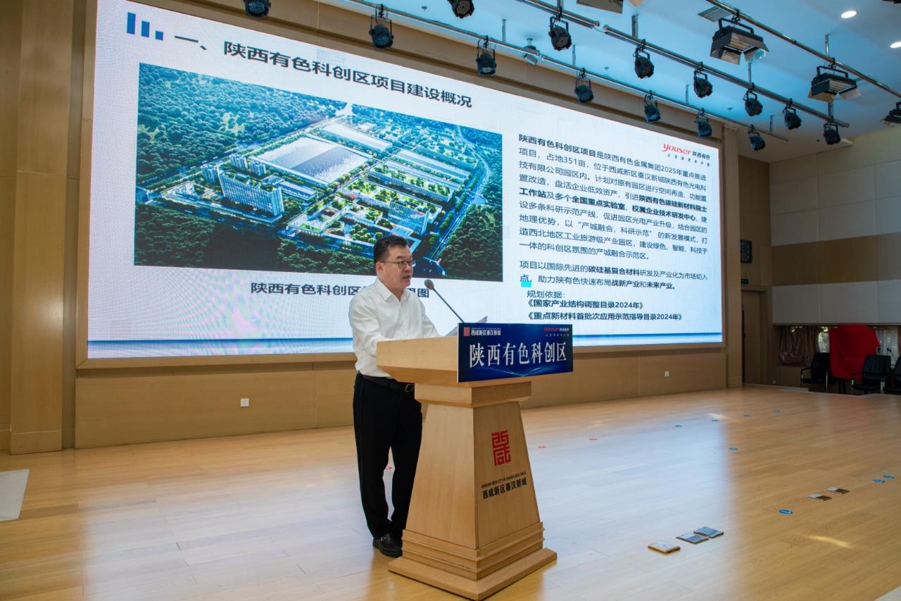 集團(tuán)公司副總經(jīng)理蘇旭盛就科創(chuàng)區(qū)項(xiàng)目的整體規(guī)劃、入駐項(xiàng)目情況及后續(xù)推進(jìn)計(jì)劃作了詳細(xì)介紹,指出陜西有色科創(chuàng)區(qū)項(xiàng)目瞄準(zhǔn)戰(zhàn)新產(chǎn)業(yè)和未來產(chǎn)業(yè),以國際先進(jìn)的碳硅基復(fù)合材料研發(fā)及產(chǎn)業(yè)化為市場切入點(diǎn),通過空間重構(gòu)、功能升級(jí)與技術(shù)創(chuàng)新,建設(shè)研發(fā)實(shí)驗(yàn)室、中試車間及院士工作站,構(gòu)建“產(chǎn)學(xué)研用”一體化平臺(tái),建設(shè)綠色、智能、科技于一體的產(chǎn)城融合示范區(qū)。陜西有色科創(chuàng)區(qū)項(xiàng)目是集團(tuán)公司響應(yīng)國家創(chuàng)新驅(qū)動(dòng)發(fā)展戰(zhàn)略、布局戰(zhàn)略性新興產(chǎn)業(yè)、未來產(chǎn)業(yè)的重要舉措,項(xiàng)目的落地將成為集團(tuán)公司高質(zhì)量發(fā)展的新引擎,對(duì)于推動(dòng)秦漢新城新材料產(chǎn)業(yè)延鏈補(bǔ)鏈強(qiáng)鏈、打造先進(jìn)制造業(yè)高地具有重要意義。