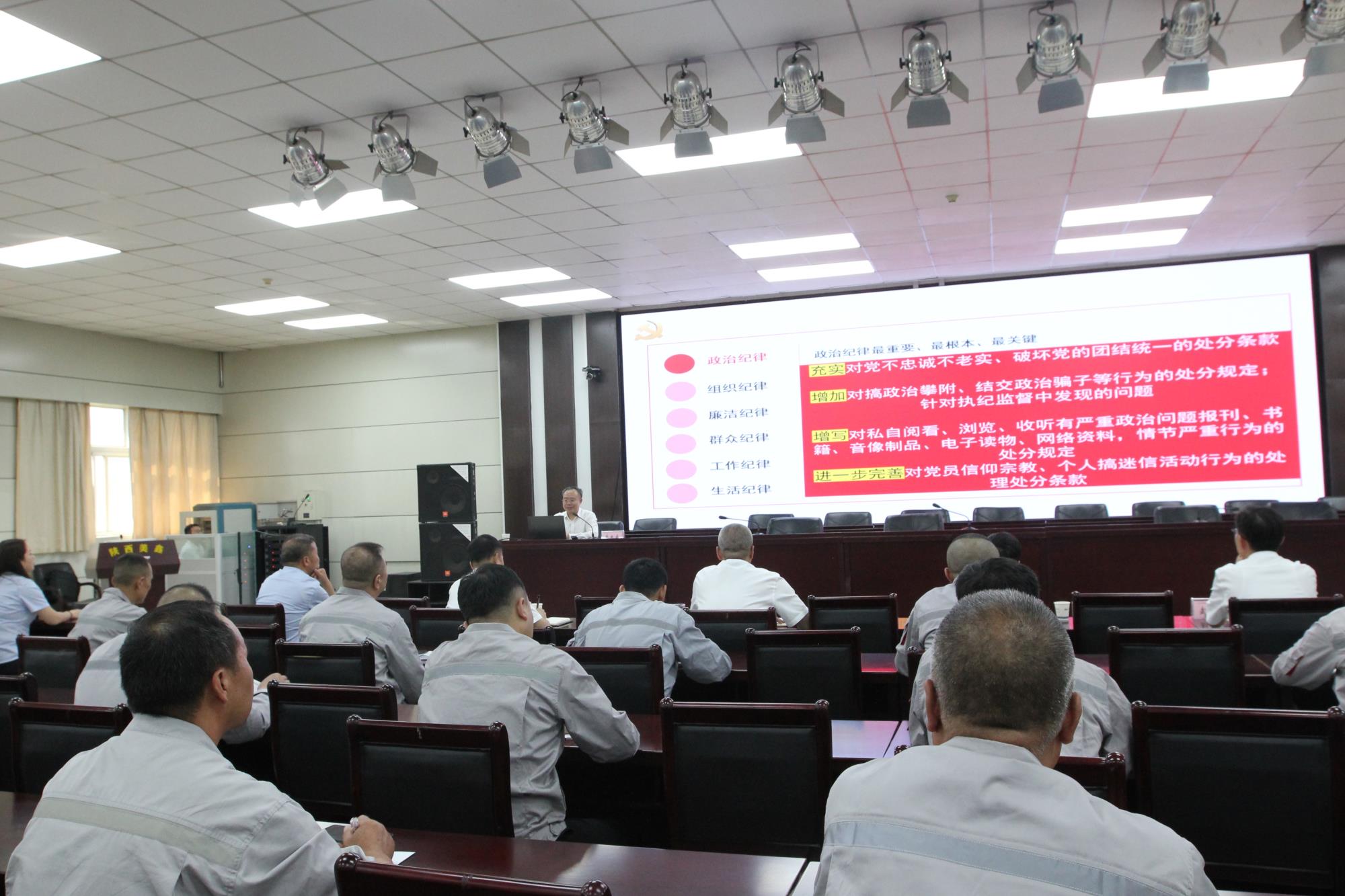 隨后,黃忠良從“深刻理解開(kāi)展黨紀(jì)學(xué)習(xí)教育的重大意義”“解讀《中國(guó)共產(chǎn)黨紀(jì)律處分條例》重點(diǎn)內(nèi)容”“《條例》與我們?nèi)粘9ぷ骱蜕罹o密相聯(lián)的內(nèi)容”“抓好《中國(guó)共產(chǎn)黨紀(jì)律處分條例》的貫徹執(zhí)行”“讓遵規(guī)守紀(jì)成為行動(dòng)自覺(jué)”五個(gè)方面為陜西美鑫公司黨員干部講授了黨紀(jì)學(xué)習(xí)教育專題黨課。黃忠良強(qiáng)調(diào),陜西美鑫公司黨員干部要準(zhǔn)確把握黨紀(jì)學(xué)習(xí)教育的目標(biāo)要求,持續(xù)在學(xué)紀(jì)、知紀(jì)、明紀(jì)、守紀(jì)上下功夫,以忠誠(chéng)干凈擔(dān)當(dāng)?shù)膶?shí)際行動(dòng)為陜西有色金屬集團(tuán)奮進(jìn)“千百十一”高質(zhì)量發(fā)展總目標(biāo)、建立現(xiàn)代產(chǎn)業(yè)體系、打造有色金屬高新材料新名片、建設(shè)世界一流企業(yè)提供堅(jiān)強(qiáng)保障。