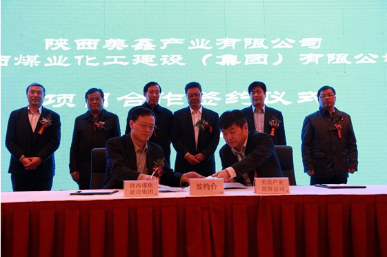 元月28日上午,陜西美鑫產(chǎn)業(yè)投資有限公司與陜煤化建設(shè)集團(tuán)在西安高新產(chǎn)業(yè)園簽訂項(xiàng)目合作開(kāi)發(fā)框架協(xié)議。美鑫公司總經(jīng)理封建利、陜煤化建設(shè)集團(tuán)總經(jīng)理張超暉代表雙方進(jìn)行了簽字。