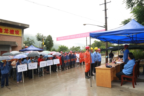 這是陜西鉛硐山礦業(yè)有限公司正在舉行的蔣家溝排渣場泥石流地質(zhì)災(zāi)害現(xiàn)場處置應(yīng)急演練的情景。