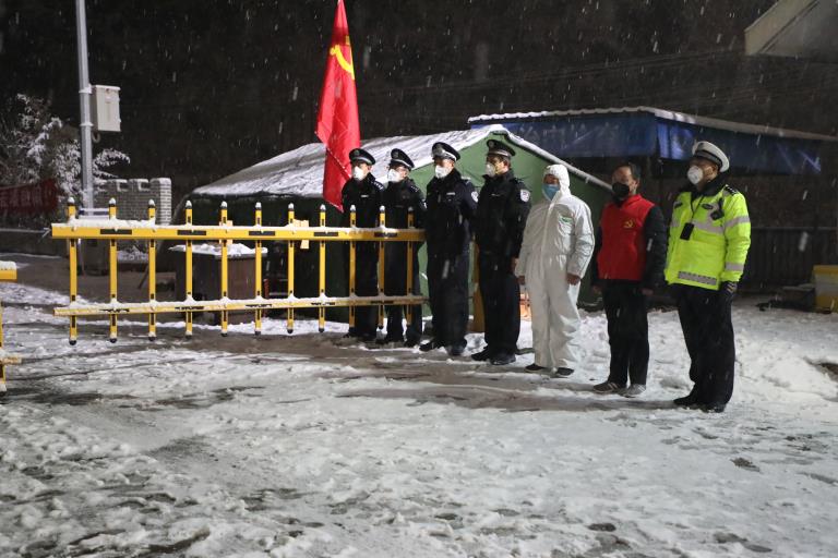風(fēng)雪中堅(jiān)守保家園。2月5日晚,金堆礦區(qū)氣溫驟降,雪花飄飄,寒風(fēng)襲人。金堆礦區(qū)抗擊新型冠狀肺炎的六個(gè)檢查站、48個(gè)勸導(dǎo)點(diǎn)的同志不畏嚴(yán)寒不畏風(fēng)雪,依然堅(jiān)守在自己的崗位上。