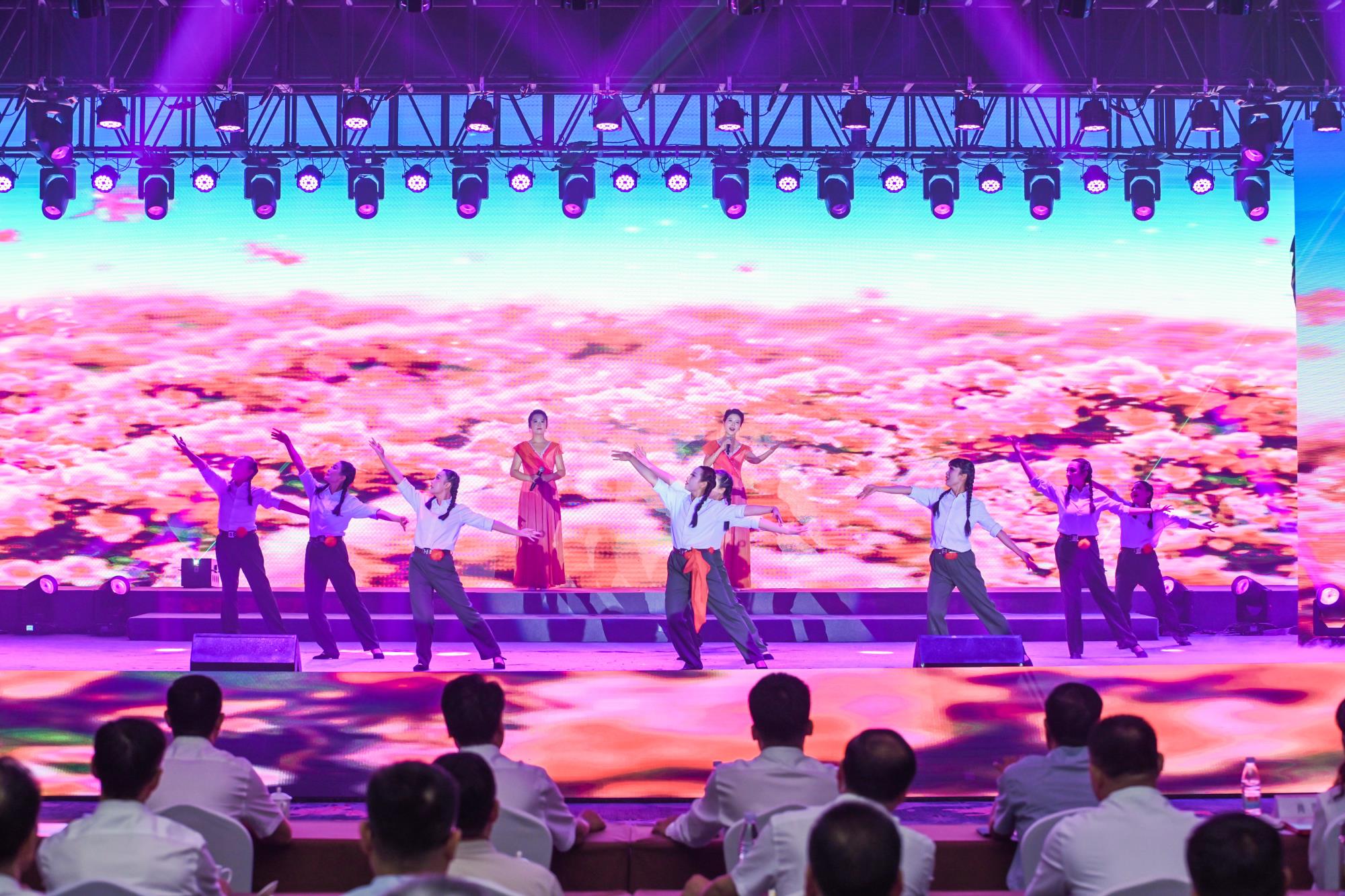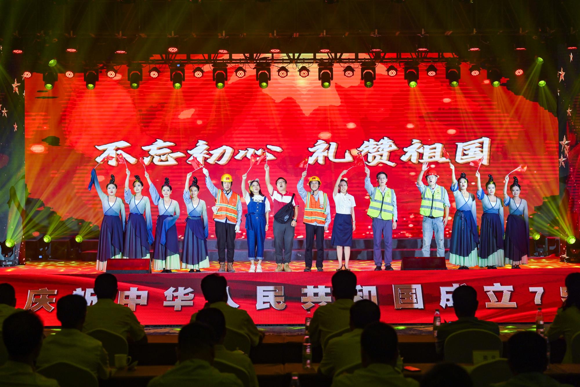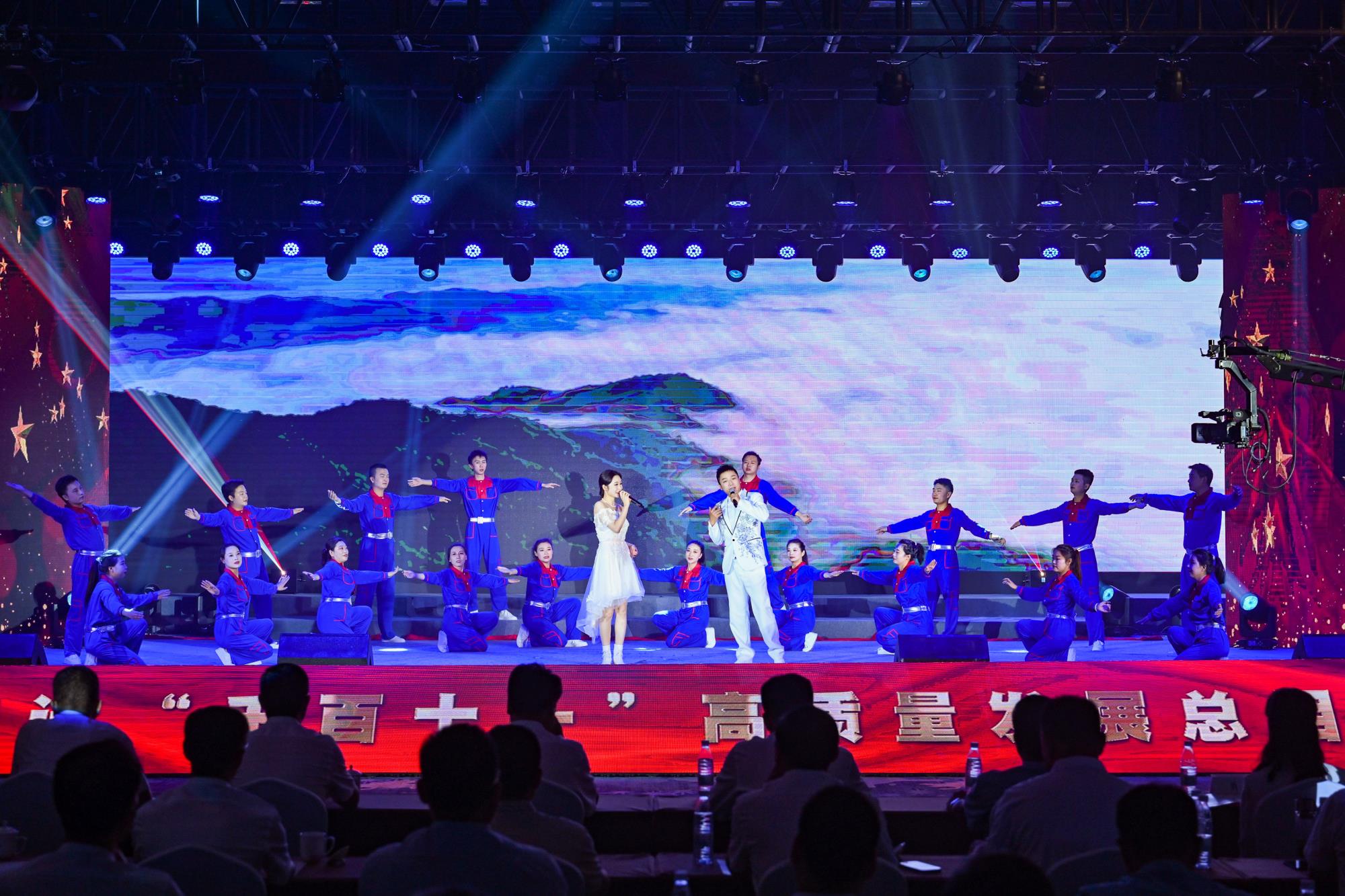 “我們都是奮斗者,報國夙愿挺身償。勇立潮頭搏浪去,萬眾攻堅鑄輝煌。肩擔(dān)著使命創(chuàng)偉業(yè),復(fù)興路上圓夢想!”一首首動人的歌曲,一段段優(yōu)美的舞蹈,一句句深情的朗誦,傳遞著對偉大祖國的無限祝福,對有色事業(yè)的執(zhí)著熱愛,對美好生活的熾熱向往,凝聚起廣大職工為實現(xiàn)中國夢、強企夢而不懈奮斗的壯志豪情。以磐石之志,堅地質(zhì)初心,廣大職工表示將立足本職、擔(dān)當(dāng)作為,為實現(xiàn)兩集團(tuán)高質(zhì)量跨越發(fā)展,奮進(jìn)陜西有色金屬集團(tuán)“千百十一”總目標(biāo)再創(chuàng)佳績、再立新功。兩集團(tuán)領(lǐng)導(dǎo)班子成員、部分外部董事,機關(guān)全體人員,權(quán)屬單位主要負(fù)責(zé)人、工會主席、受表彰代表和職工代表等300余人在現(xiàn)場觀看演出。本次活動通過新媒體平臺進(jìn)行了圖片直播,截至發(fā)稿前,累計吸引12萬余人次線上觀看。