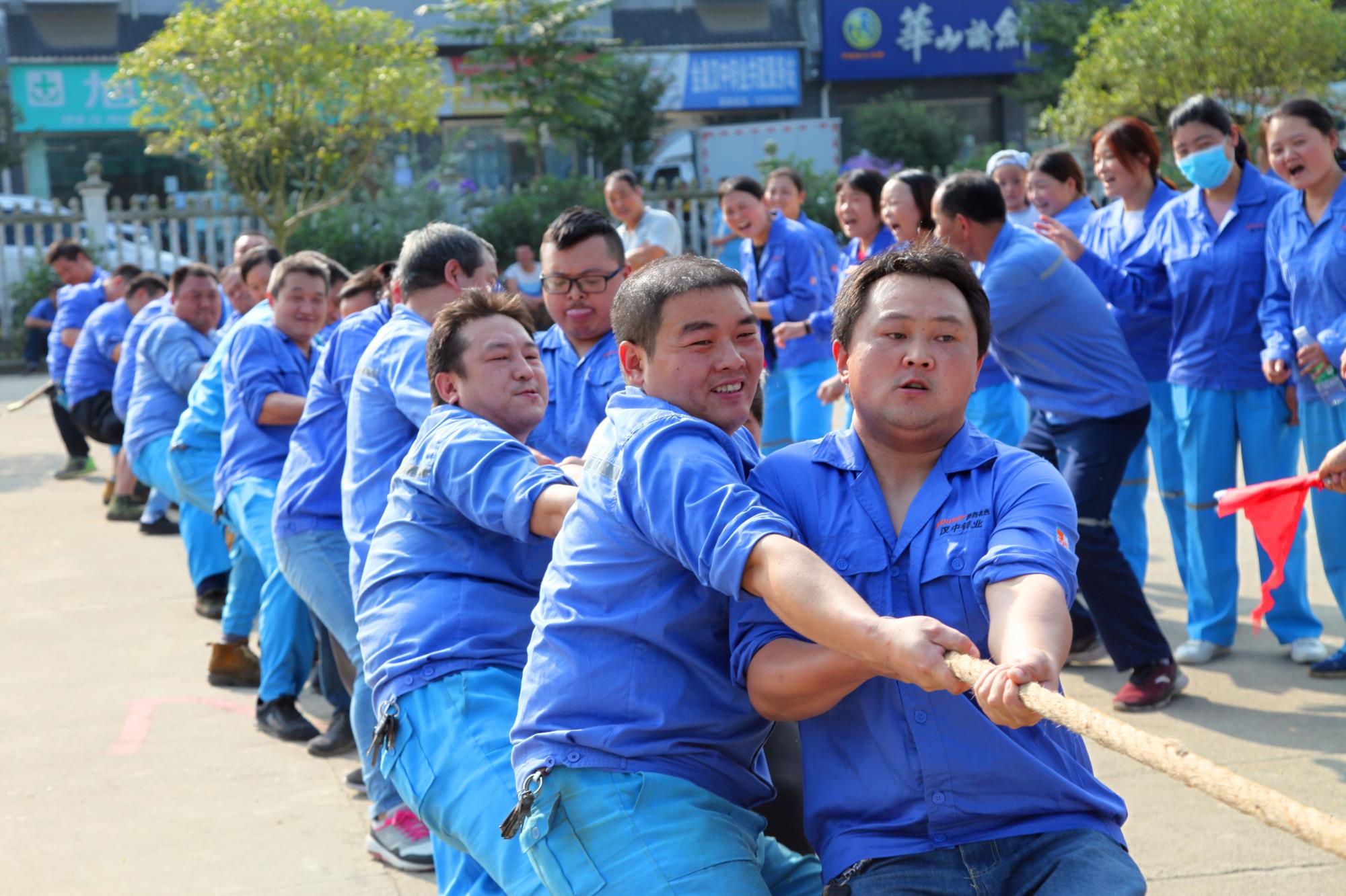 金風送爽,丹桂飄香。下午14時30分,公司總部職工文化活動中心人聲鼎沸,熱鬧非凡。拔河比賽在緊張、激烈的氣氛中開始,在宣布完比賽規(guī)則,隨著裁判一聲哨響,比賽現場立刻沸騰起來。加油聲此起彼伏,一浪高過一浪!在拉拉隊的“加油”助威聲中,每支參賽隊都卯足了勁,隊員們都漲紅了臉,大家都抓緊了繩,全力以赴,激烈的比賽將整個活動推向了一個又一個高潮!