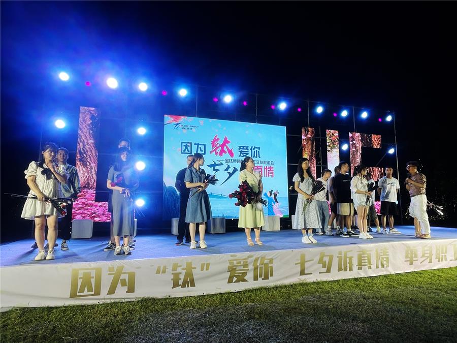 8月4日七夕夜,由寶鈦集團(tuán)工會(huì)主辦,工會(huì)女職委、團(tuán)委辦公室承辦的“因?yàn)椤仭瘣?ài)你 七夕訴真情”單身職工交友聯(lián)誼活動(dòng)在西府歡樂(lè)城內(nèi)的北山風(fēng)吟營(yíng)地如期舉辦。寶鈦集團(tuán)黨委副書(shū)記、工會(huì)主席王建超出席活動(dòng)并為“寶鈦紅娘”代表發(fā)放聘書(shū)。工會(huì)副主席田周平致開(kāi)幕辭。