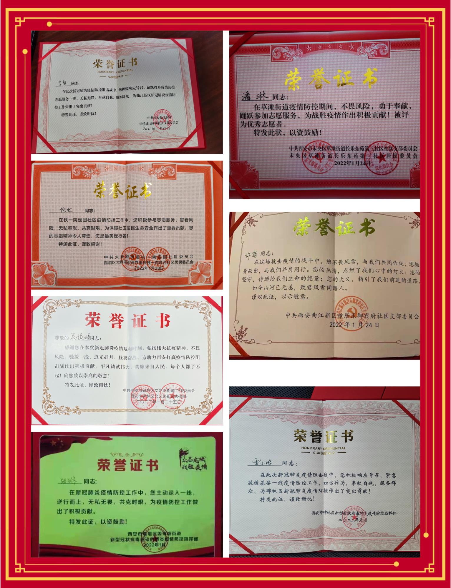 近日,測繪路、文藝路、曲江等多家社區(qū)向地礦(黃金)集團15名紀(jì)檢干部頒發(fā)了抗擊疫情榮譽證書,以表彰在疫情防控工作中做出的貢獻,同時也希望他們繼續(xù)弘揚偉大抗疫精神,扛起職責(zé)使命,為社會奉獻力量。