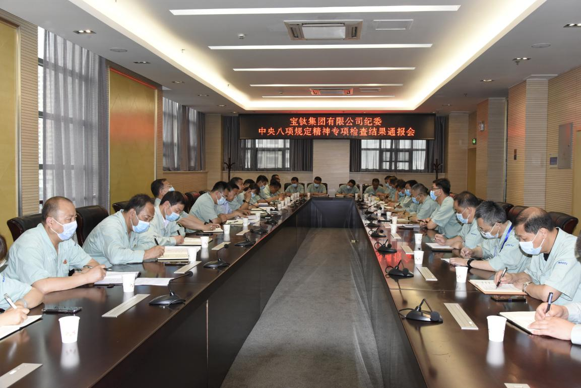 6月9日下午,在寶鈦賓館七樓學(xué)術(shù)討論廳,寶鈦集團(tuán)紀(jì)委組織召開(kāi)中央八項(xiàng)規(guī)定精神專(zhuān)項(xiàng)檢查結(jié)果通報(bào)會(huì),寶鈦集團(tuán)全資子公司、控股公司黨政負(fù)責(zé)人、紀(jì)委書(shū)記(紀(jì)檢委員)、紀(jì)檢部門(mén)干部參加了會(huì)議,紀(jì)委書(shū)記賀治民出席會(huì)議,紀(jì)委副書(shū)記劉軍發(fā)主持會(huì)議。